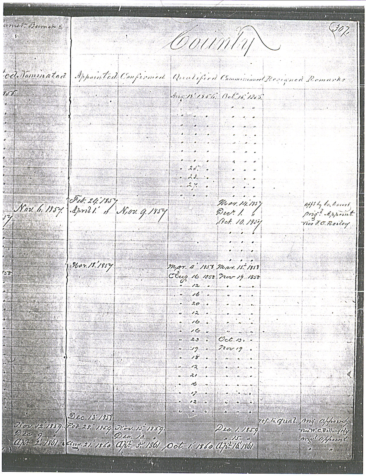 Name Office Elected Nominated Appointed Confirmed Qualified Commissioned Resigned Remarks