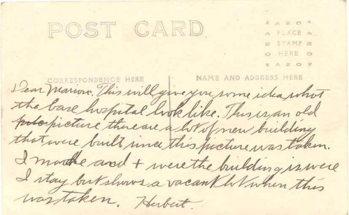 Post card showing the Base Hospital at Camp Bowie, Fort Worth, Texas |