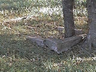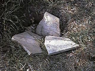 Appears to have been the base for a metal marker that was probably stolen in order to sell for scrap metal. |