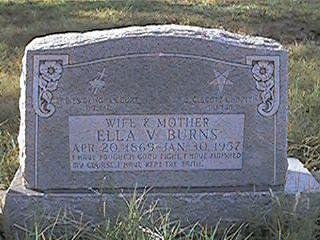 Wm.'s mother is living in the household. Her name is difficult to read so our best effort results as La___ A. BURNS. She is a black female, a widow, age 59, born September 1840 in Virginia, as were her parents. She is shown to had had only one child. Could this be the Lou Burns from the headstone above? From the birth dates, above, we can determine that this family migrated from Virginia to Texas sometime between 1889 and 1892. |