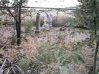 Although the cemetery is obscured by overgrowth outside the fence, someone has recently cleaned inside. The last time I visited this cemetery, the overgrowth was equally as bad inside. Perhaps the overgrowth has a purpose. Vandals do not know that there is a cemetery here. The gate is locked so all of the photographs were taken from outside the fence. Getting to the fence was not an easy task. |