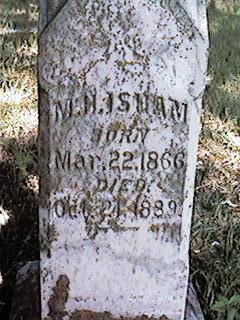 Isham Cemetery The Rev. W. Marion Isham (1831-1904) and his family came to Tarrant County from Georgia about 1870. Soon after arriving in the area Isham donated a one-acre plot of land to be used for a community cemetery. The oldest remaining legible grave marker here is that of N.L. Sweet (1824-1870), although earlier burials are documented by plain sandstone markers. Approximately five acres were added to the graveyard in 1941. Still in operation as a community burial ground, the historic graveyard is maintained by the Isham Cemetery Association. Texas Sesquicentennial 1836-1986.