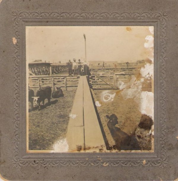 Cattle pens at the Stockyards My Grandparents and another couple are standing at back. |