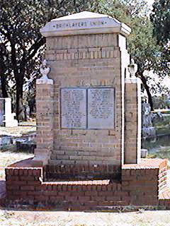 The first burial in Oakwood is beleived to be Frank L. Fox, step-son of John Peter Smith. Smith donated 20 acres of land for the cemetery in 1879 when Frank died. The cemetery currently covers 100 acres. As the following photographs will show, Oakwood is virtual sea of granite and marble. Source: Historic Oakwood Cemetery with Calvary Cemetery and Old Trinity Cemetery of Fort Worth, Texas, compiled by Helen McKelvy Markgraf and Rob G. Yoder. Published 1994 by the Fort Worth Genealogical Society. |