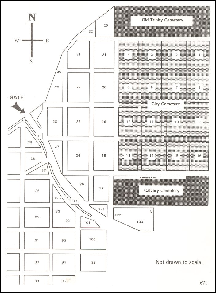 | Use this map to locate the Blocks in Oakwood Cemetery. A